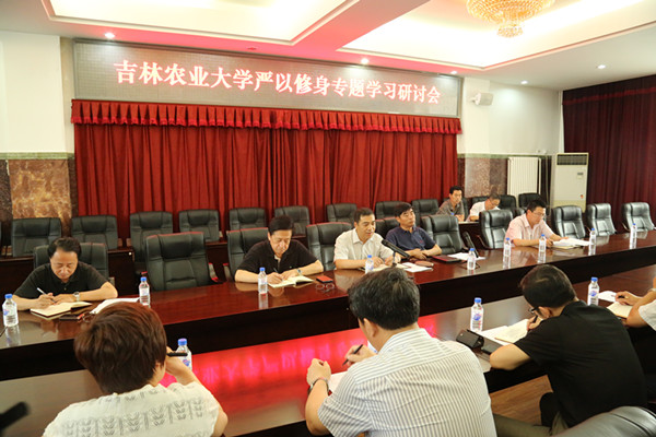 6月24日,学校党委理论学习中心组在一号楼1区第五会议室召开严以修身专题学习研讨会。校领导席岫峰、戴立生、孙少平、徐文生、李新参加会议。会议由校党委书记席岫峰主持。