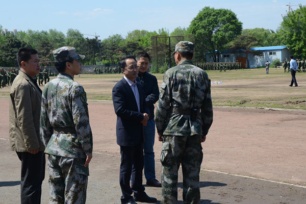 5月20日,校党委副书记徐文生到军训现场慰问正在训练中的学生军训团官兵和全体指导员。