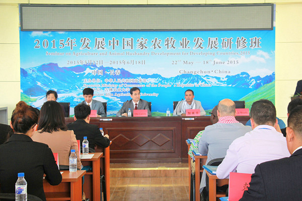 5月22日,由国家商务部主办、我校承办的2015年发展中国家农牧业发展研修班开班典礼在学校十七号楼报告厅举行。校长秦贵信、吉林省商务厅国际经济援助处处长丁瑞生出席了开班典礼。