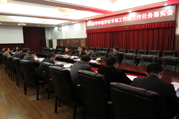 学校相关部门负责人、评估办公室全体成员参加了会议。