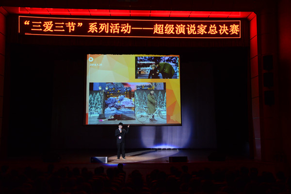 为积极响应习近平总书记向全国青少年提出的“爱学习、爱劳动、爱祖国;节粮、节水、节电”的号召,在广大学生中培养和践行社会主义核心价值观, 4月17日,学校在鲲鹏学生文化活动中心举办了“三爱三节”系列活动——超级演说家总决赛。
