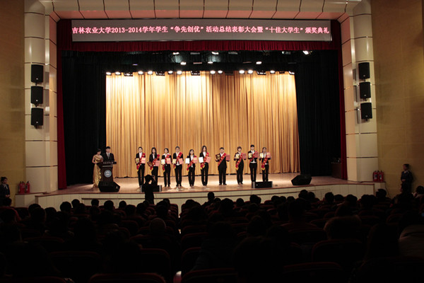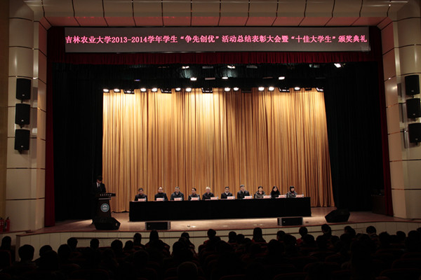为选树典型,充分发挥榜样的带动引领作用,营造良好的“争先创优”氛围,全面促进学生成长成才。12月11日下午,学校在鲲鹏学生文化活动中心隆重召开2013-2014学年学生“争先创优”活动总结表彰大会暨“十佳大学生”颁奖典礼。学校党委书记席岫峰,副校长张立峰,党委副书记徐文生,关心下一代工作委员会主任孙立城出席了会议。