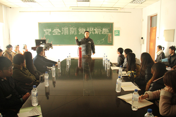 讲座邀请学校保卫处防火科高延辉讲解了基本消防安全知识,结合实际案例讲解了逃生自救方法,并现场演示了报警器、灭火器的正确使用方法。