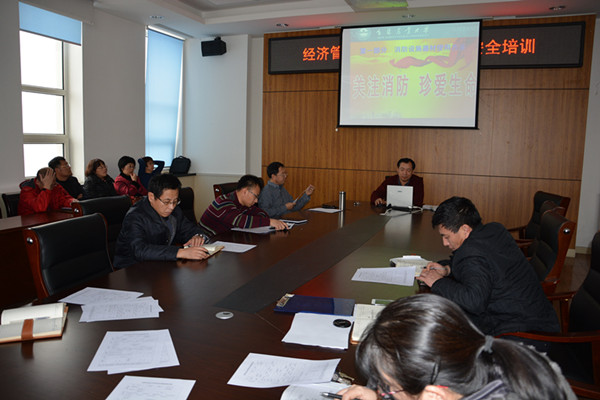12月10日,经济管理学院在学校十五号楼会议室举办教职工消防安全培训。培训由学院党委书记彭啸峰主讲。