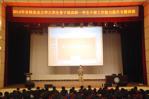 为扎实推进吉林农业大学“青年马克思主义者培养工程”,加强青年学生思想引领工作,提升我校学生干部的整体素质,11月21日至23日,我校在鲲鹏学生文化活动中心举办了2014年吉林农业大学大学生骨干培训班。校党委副书记徐文生出席了开班仪式并讲话。