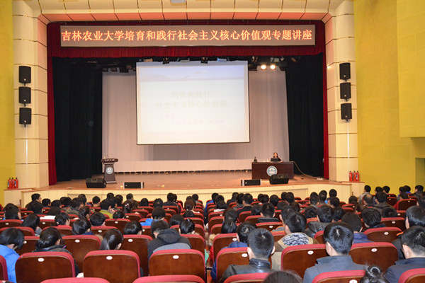 11月25日,我校邀请吉林省委党校宋文新教授在鲲鹏学生文化活动中心作了题为《培育和践行社会主义核心价值观》的专题讲座,校党委副书记徐文生主持了报告会。