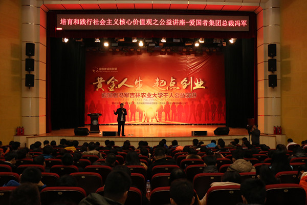 11月15日,我校生命科学学院举办青春大讲堂系列讲座第二讲,爱国者集团总裁、达沃斯全球领袖、中国企业家联合会会长冯军在学校鲲鹏学生文化活动中心做了题为“培育和践行社会主义核心价值观”公益讲座。