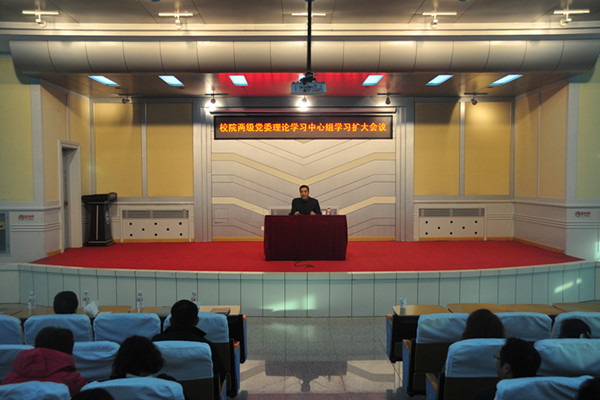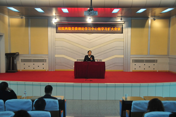 11月12日下午,学校在十一号楼二楼报告厅召开校院两级党委理论学习中心组学习扩大会议。吉林财经大学党委书记周知民作了题为《法治中国——学习十八届四中全会文献的体会》的专题辅导报告。校领导席岫峰、秦贵信、戴立生、孙少平、张立峰、陈光出席会议。会议由校党委书记席岫峰主持。