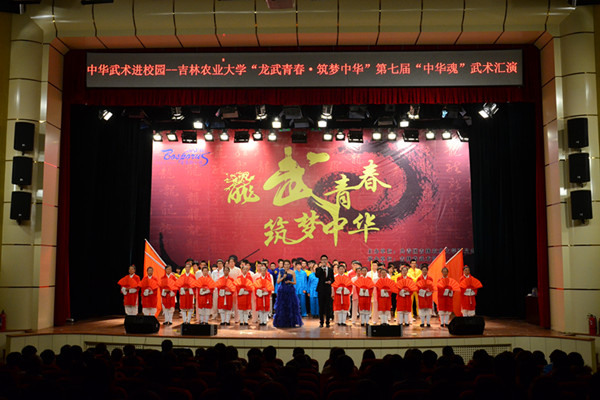 10月26日,我校在鲲鹏学生文化活动中心举办的“中华武术进校园”—吉林农业大学“龙武青春•筑梦中华”第七届“中华魂”武术汇演圆满落下帷幕。中国武术协会常委、吉林省武术协会主席徐万东,吉林省武术协会副主席、太极分会会长丛德顺,吉林省武术协会副主席王秀花等出席了活动。