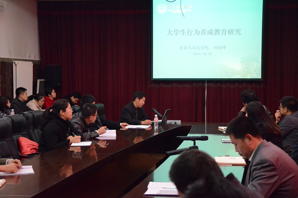 会上,资源与环境学院学生工作人员做了题为《依法治国——聚焦十八届四中全会》的热点播报,分享了《苦难辉煌》的读书心得;资源与环境学院党委副书记刘剑峰做了题为《大学生行为养成教育研究》的研究成果。学生工作处处长赵明家对近期的学生安全等工作进行了安排和部署。