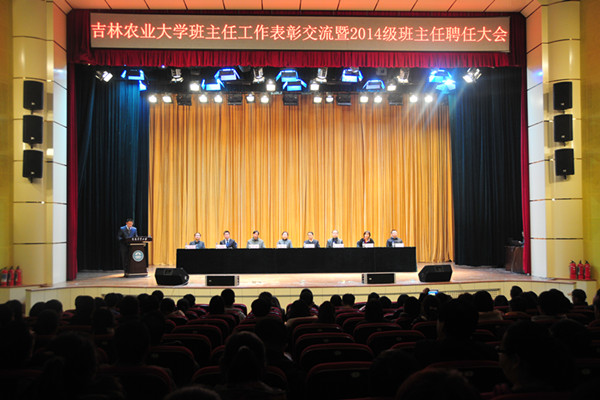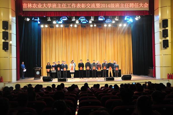 党委宣传部部长于运国宣读了《关于表彰吉林农业大学2013-2014年度“优秀班主任”的决定》;学生工作处处长赵明家做了学校2013-2014年度学生班主任工作总结汇报;资源与环境学院党委书记吕长宝就本学院的班主任工作做了汇报;优秀班主任代表信息技术学院2013级物联网工程班班主任于合龙、园艺学院2011级风景园林专业二班班主任周旭丹、外国语学院2011级2班班主任王欢、食品科学与工程学院2013级二班班主任张万志在大会上做了经验交流;与会领导为新聘任的班主任代表颁发了选聘证书,为受表彰的优秀班主任颁发了获奖证书。