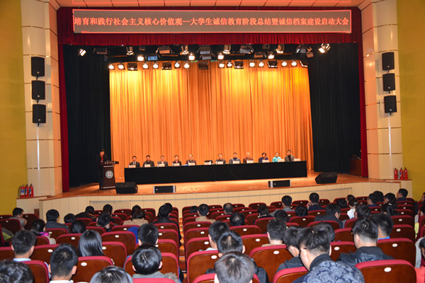 10月23日,学校在鲲鹏学生文化活动中心召开了培育和践行社会主义核心价值观——大学生诚信教育阶段总结暨诚信档案建设启动大会。吉林省教育厅思政处处长刘淑英,学校党委副书记徐文生出席了会议。