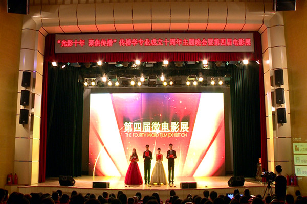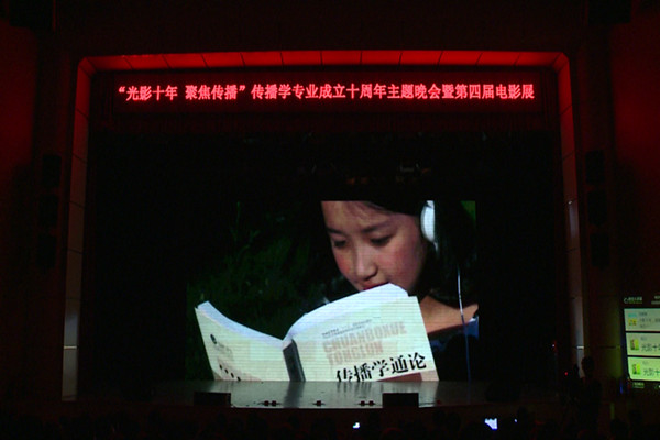 微电影展后举行了传播学专业成立十周年主题晚会,晚会演出了动感时尚的歌舞、风趣诙谐的小品、悠扬动听的传播学专业的系歌等精彩节目。