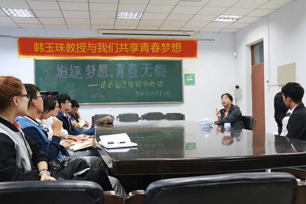 座谈会上,园艺学院韩玉珠教授围绕“追逐梦想,青春无悔”主题与同学们进行了深入交流。