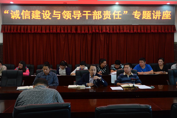 会上,马克思主义学院院长沈强教授作了题为《诚信建设与领导干部责任》的专题报告。他从诚信是市场经济的本质体现、诚信的内涵及其重要意义、中西方诚信文化的差异与启示、社会诚信缺失的表现、诚信缺失的严重后果及危害、建立与社会主义和谐经济相适应的诚信规范体系等六个方面深入剖析了高校领导干部自身的责任意识与诚信建设的内在要求。