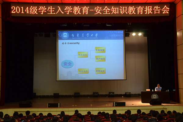 为提高2014级学生的安全防范意识,切实保障学生的人身和财产安全,使学生尽快适应大学生活。9月2日至5日,学生工作处、保卫处在学校鲲鹏学生文化活动中心举办了新生安全知识教育报告会。