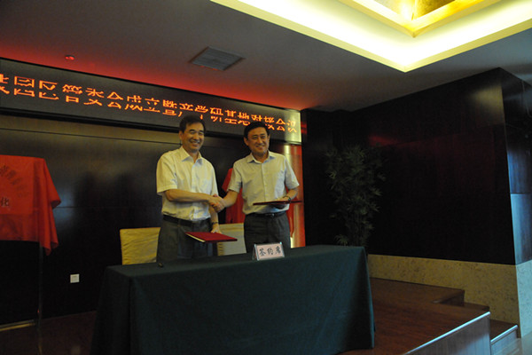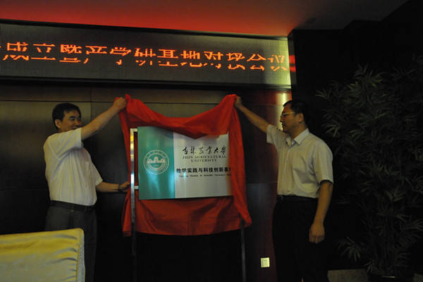 秦贵信与集安市委书记李东友为吉林农业大学教学实践与科技创新基地揭牌;秦贵信还代表学校与吉林通化农业国家农业科技园区主任姜成立签署了校园科技产学研合作协议。