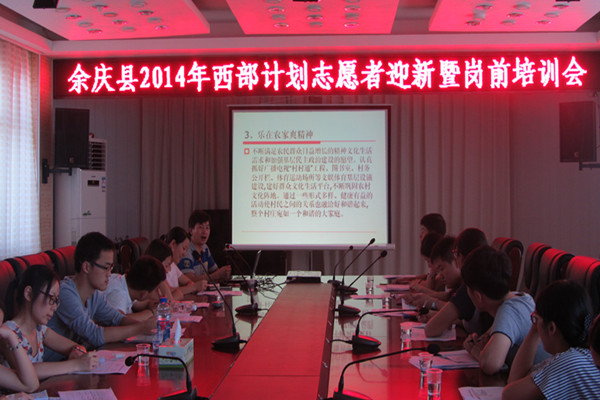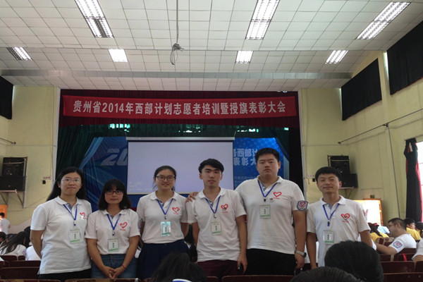 支教团成员抵达贵州省贵阳市后,在武警贵州省总队训练基地参加了贵州省2014年西部计划志愿者培训暨授旗表彰大会。会后,贵州省西部计划项目办对研究生支教团成员进行了两天的集中培训。随后,支教团成员分别到达贵州省余庆县和服务地龙家小学,先后参加了团余庆县委举办的2014年西部计划志愿者迎新暨岗前培训会和由龙家小学为我校研究生支教团成员举办的欢迎会。龙家小学校长梁中凯带领支教团成员深入余庆县龙家镇进行实地走访,先后参观了全国巾帼现代科技农业示范基地、乡村小学曙光学校、龙家镇烟草基地、“万丈坑”红军烈士之墓、田坝村寨儿童活动中心以及仙峰河等地。