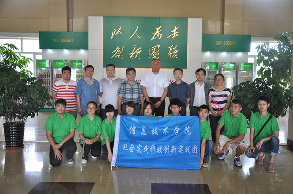 7月17日,信息技术学院开展了2014年暑期社会实践启动仪式暨赴吉林天景食品有限公司实践服务活动。学院党委书记王志江、院长李士军、天景集团经理何鹏、学生工作负责人及专业指导教师和参加社会实践学生30余人参加了本次活动。