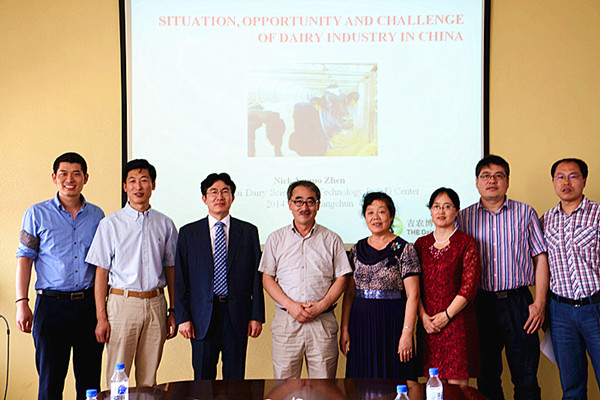 学术交流会在学校二号楼报告厅举行,金守基、李洪求和我校动物科学技术学院院长助理甄玉国副教授分别做了题目为“韩国肉市场进出口动态”“营养蛋白质组学在反刍动物研究中的应用”和“中国奶牛产业现状、机遇和挑战”的学术报告。金守基主要从事饲料添加剂和植物提取物在畜牧业中的应用等研究,李洪求主要从事蛋白质组学在动物营养研究中的应用和反刍动物内分泌学等方面研究。此次交流会的主题为奶牛业及其生产。我校相关专业的老师及学生代表听取了报告。