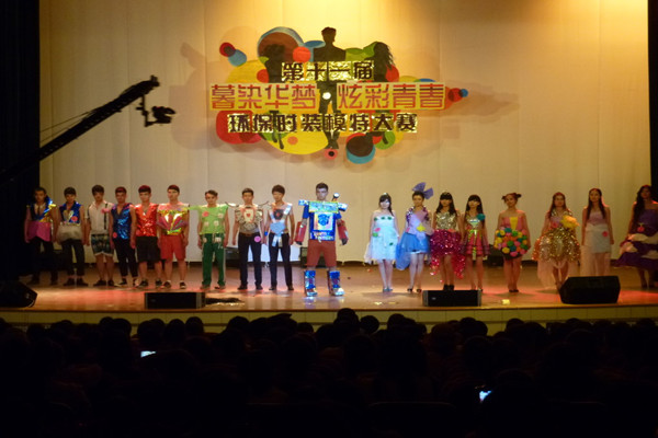6月13日,由校团委主办,人文学院承办的“暮染华梦,炫彩青春”第十一届环保时装模特大赛在我校鲲鹏学生文化活动中心举行。