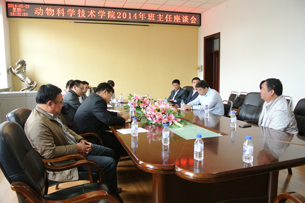 5月26日,动物科学技术学院在学校二号楼会议室召开2014年班主任座谈会。学院党委书记高光、院长钱爱东、班级班主任及全体学工人员参加了会议。会上,班主任就如何做好学生工作、如何更好地推进学生就业等方面进行了交流。高光对学院的班主任工作做了充分的肯定,希望班主任继续用心工作,争取取得更好的成绩。