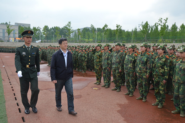 5月16日上午,学校在第二运动场隆重举行了2014年学生军训总结大会。吉林省军区工作办公室主任李振民、65301部队直工处参谋吴培青、侦察营副营长韩玉,学校党委书记姚秋杰,副校长孙少平、孙爱军,党委副书记徐文生出席了大会。大会由副校长陈光主持。
