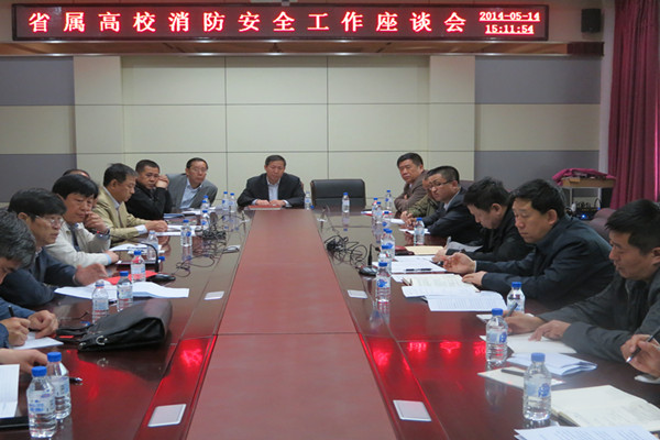 5月14日,省属高校消防安全工作座谈会在我校十一号楼教务处会议室召开。省教育厅副厅长岳强,我校副校长孙少平,部分省属高校分管安全工作的副校长和保卫处长参加了会议。会议由省教育厅学校安全处处长卢林主持。