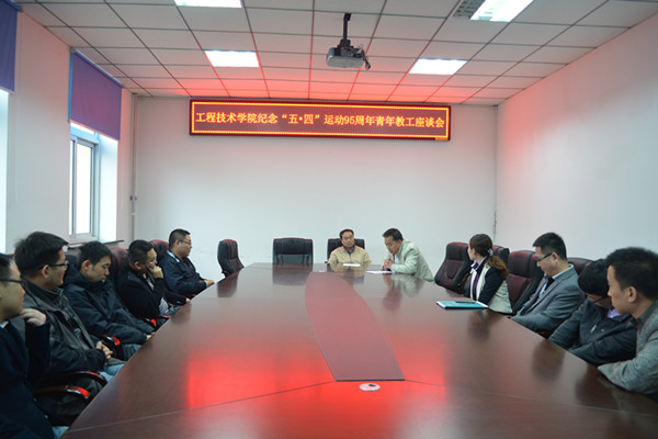 5月4日,工程技术学院在学校二十一号楼报告厅召开纪念“五·四”运动95周年青年教工座谈会,座谈会由学院党总支书记任来成主持。
