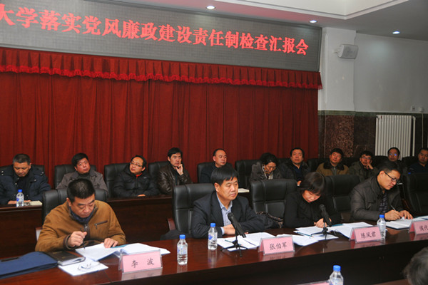 12月23日、24日,以省政协副主席、省教育厅厅长张伯军为组长,省高校纪工委副书记陈凤君为副组长的2013年全省普通高校落实党风廉政建设责任制情况检查考核第一组一行4人,莅临我校检查指导。