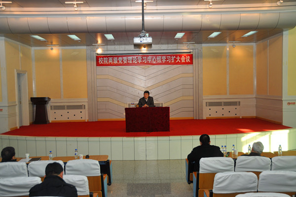 12月6日下午,学校在十一号楼二楼报告厅召开校院两级党委理论学习中心组学习扩大会议。校党委书记姚秋杰,校长秦贵信作了专题辅导报告,对十八届三中全会精神进行解读。副校长孙少平、孙爱军、张立峰、陈光,校长助理曲政文,校党委常委、组织部部长徐文生出席会议。会议由校纪委书记温成涛主持。
