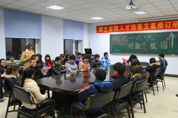 12月9日,园艺学院在学校四号楼报告厅举行 “铭记一二·九 时刻爱祖国”纪念“一二·九”运动78周年座谈会。