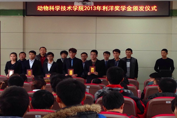 11月22日,动物科学技术学院在学校二号楼阶梯教室举行了2013年度利洋奖学金颁发仪式。