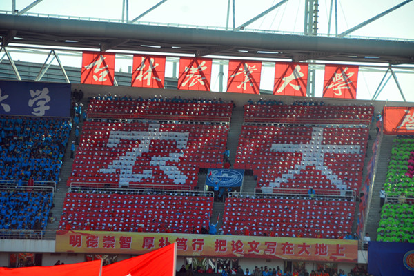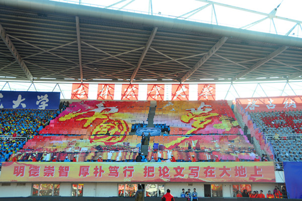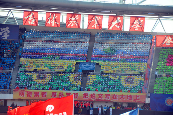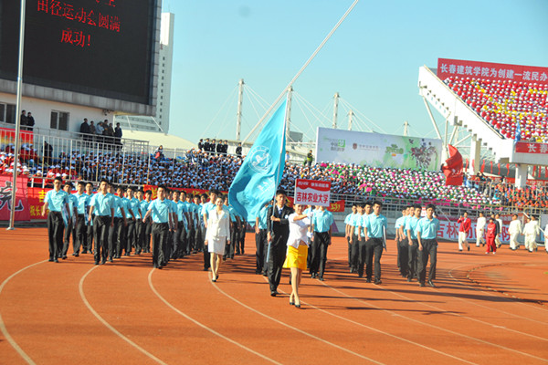 由67人组成的检阅方队步伐整齐、英姿飒爽,尽展农大学子的蓬勃朝气。由1415名学生组成的观众队伍手持翻板等道具,拼成“中国梦”、“把论文写在吉林大地上”等多种图案,动作整齐、造型别致、场面宏大,赢得了大会组委会和兄弟院校的高度赞扬,并获得精神文明奖。学校龙林武术表演团获得表演奖。