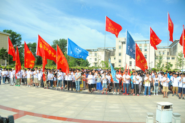 党委宣传部、教务处、科技管理处、教研基地管理处、学生工作处、招生就业工作处及各学院团委书记、教师代表、大学生志愿者代表共500余人参加了出征仪式。