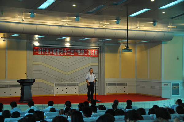 演讲赛中,选手们精彩的演讲令现场掌声不断。他们紧密围绕“当好主人翁建功‘十二五’”这一活动主题,充分展现了我校教职工的精神风貌。经过激烈角逐,工程技术学院王军政获得一等奖;学科建设处赵良、外国语学院张晶获得二等奖;工程技术学院刘祥朝、后勤保障处王志、学生处卢秋婷获得三等奖。