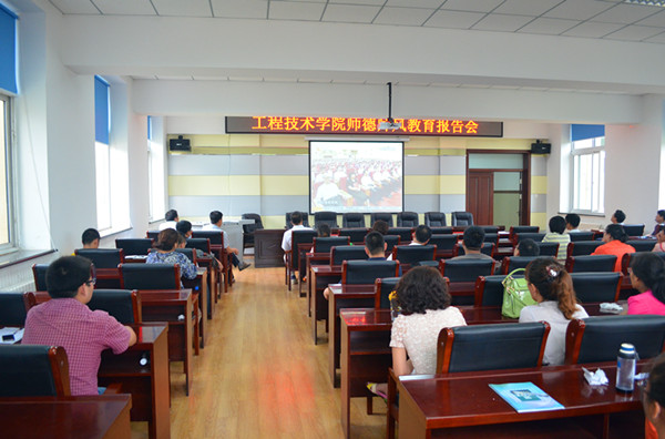 为大力加强学院师德师风建设,引导教师加强师德修养,端正工作作风。 7月8日,工程技术学院在学校二十一号楼二楼报告厅开展了师德师风专题教育活动。工程技术学院领导班子及全体教师参加了此次活动。