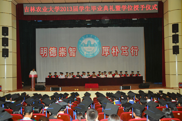 6月25日上午,我校2013届学生毕业典礼暨学位授予仪式在鲲鹏学生文化活动中心隆重举行。校党委书记姚秋杰,校长秦贵信,副校长孙爱军、张立峰、陈光,校长助理曲政文,校党委常委、组织部部长徐文生出席仪式,毕业典礼由副校长孙少平主持。
