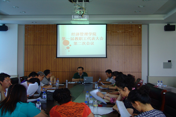6月13日, 经济管理学院在学校十五号楼会议室召开第一届教职工代表大会第二次会议。会议由学院党委书记彭啸峰主持。
