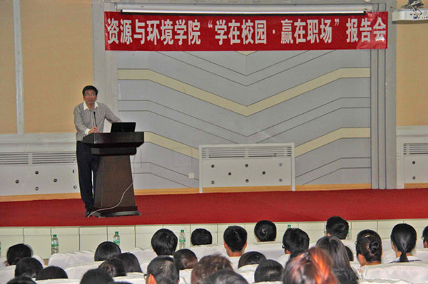 6月19日,资源与环境学院在学校十一号楼报告厅举办了“学在校园·赢在职场”主题报告会。