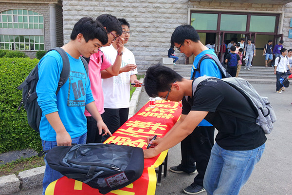 6月5日上午,在学校十一号楼前,农学院开展了“高考零作弊,靠我更靠你”为主题的宣传活动。通过板报和签名等形式向全校师生宣传诚信高考。