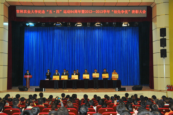 5月4日,我校纪念“五四"运动94周年暨2012-2013学年 “创先争优”表彰大会在鲲鹏学生文化活动中心举行。校党委书记姚秋杰,校党委常委、组织部部长徐文生出席大会。