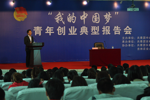 4月25日,由团中央主办、吉林团省委承办、团市委和我校共同协办的“我的中国梦”青年创业典型报告会吉林省首场报告在我校十一号楼二楼国际报告厅隆重举行。校党委书记姚秋杰,党委常委、组织部部长徐文生陪同共青团中央城市青年工作部副部长马兴民,共青团吉林省委副书记牟大鹏,共青团长春市委副书记姜晓东参加了报告会。报告会由校团委书记董雅致主持。