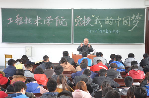 4月15日,工程技术学院邀请学校关心下一代委员会委员黄作林老师,为学院学生做以“我的中国梦”为主题的“十八大”学习辅导报告。