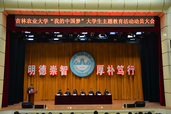 会上,学校团委书记董雅致传达了中共教育部党组和省教育厅关于在高校中深入开展“我的中国梦”主题教育活动有关通知精神。学生处处长赵明家宣读了《吉林农业大学“我的中国梦”大学生主题教育活动方案》,本次主题教育活动旨在深入学习宣传贯彻党的十八大精神,通过宣传教育活动将学生个人命运与国家民族命运紧密结合起来,引导广大学生以实现国家富强、民族复兴、人民幸福的伟大“中国梦”而发奋学习,不懈奋斗。