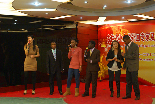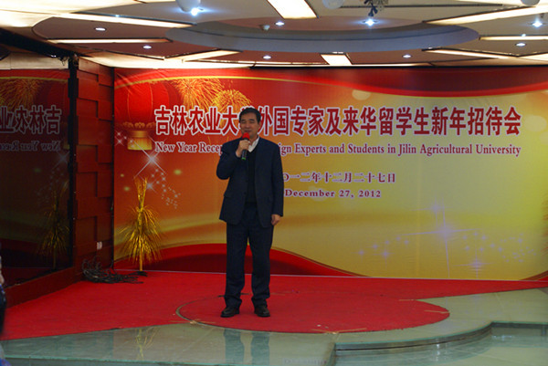 秦贵信首先代表学校感谢各位外国专家及来华留学生一年来对我校教育国际化各项工作的支持和配合,勉励大家在新的一年里,继续努力工作和好好学习,进一步加强有效沟通,争取在新的一年取得更优异的成绩。并向所有关心、支持、参与和为学校国际合作与交流事业做出卓越贡献和不懈努力的同仁们表示衷心感谢,向所有来宾致以最美好的节日祝福。为表彰留学生,秦贵信向我校蒙古留学生恩和颁发了2012年度吉林农业大学优秀来华留学生证书。