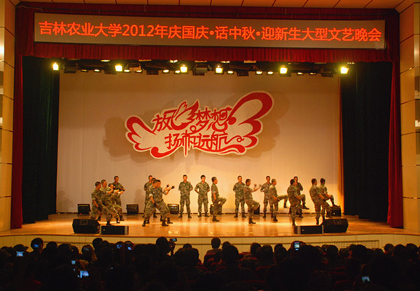 9月19日晚,我校鲲鹏剧场内霓虹闪烁,乐曲飞扬。由校团委主办,校学生会、社团联合合会、大学生艺术团共同承办的“放飞梦想 扬帆远航”庆国庆·话中秋·迎新生大型文艺晚会隆重举行。学校党委常委、组织部部长徐文生,65301部队防化营指导员廖哨兵,学生处处长赵明家,校团委书记董雅致以及65301部队军训教官与近千名青年学生一同观看了演出。