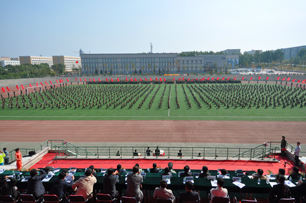 9月21日上午,我校2012级新生开学典礼暨军训总结表彰大会在体育场举行。校党委书记姚秋杰,吉林省军区大学生军训办公室主任李振民,校党委副书记戴立生,副校长孙少平、孙爱军、张立峰、陈光,校长助理曲政文,党委常委、组织部部长徐文生,65301部队直属工作处干事张文勇,吉林省军区大学生军训办公室参谋朱峰,65301部队防化营教导员廖哨兵出席会议。大会由戴立生主持。