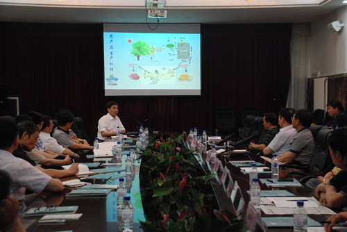上午,在一号楼第五会议室,秦贵信对省农发办、农发评审中心党员干部莅临我校表示欢迎,对省农发办多年来给予学校的支持表示感谢,并向省农发办等一行简要介绍了学校发展概况。秦贵信做了题为《农业发展历程与未来农业展望》的精彩报告。他深入浅出地从农业的概念功能谈起,在报告中阐述了科学技术对我国乃至世界农业发展的重要作用,介绍了世界农业现状、发展态势,并围绕中国大农业的发展现状和未来趋势,探讨了农业科技发展趋势、农业国际化战略等行业热点问题,分析了中国农业发展面临的问题,指出未来我国农业发展的出路与对策——依靠政策、科技与投入,并描绘了我国高效农业发展的未来目标与前景。