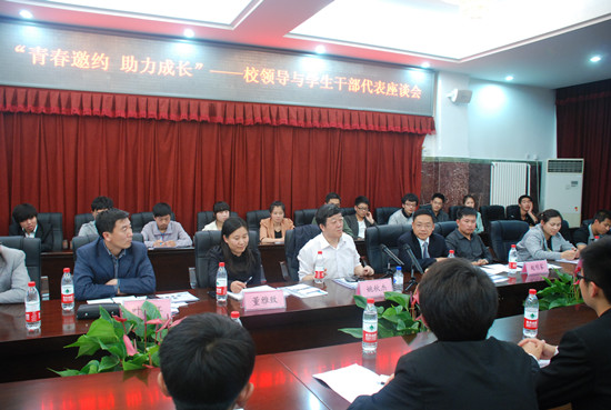 6月4日,校团委在一号楼第五会议室召开了“青春邀约 助力成长”校领导与学生干部代表座谈会。校党委书记姚秋杰、校党委副书记孙杰光,学生处处长赵明家、招生就业处处长叶长江、军事体育教研部主任陈静、各学院团委书记及学生干部代表参加了座谈会。会议由校团委书记董雅致主持。